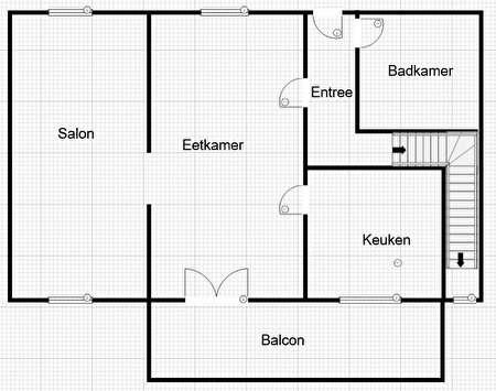 - Begane grond (125m2): Entree met trap naar boven, badkamer met toilet, keuken, eetkamer, salon met houtkachel (als sfeer verwarming).