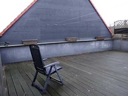 hoekwoning met 3 slaapkamer, keuken, living, kelder, badkamer, een kamer die uitkomt op een mooie dakterras, garage van 7/8 = oppervalkte van de dakterras, zolder die je nog kan verbouwen naar 3 volwaardige slaapkamerEPC C, geen asbest