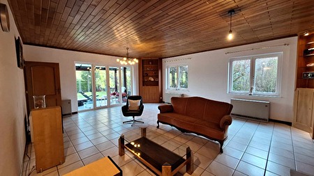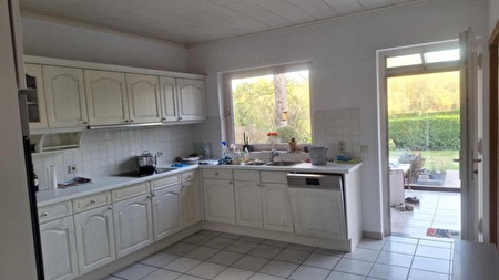 BEVEREN • Instapklare bungalow (open bebouwing) met veranda, twee garages en ruime tuinGelijkvloers: Inkomhal, hal met technische ruimte, gastentoilet, woonkamer-eetkamer, ingerichte keuken, hal, spender, zeer ruime veranda ("galerij") met regenwaterput, gang, drie slaapkamers, ingerichte badkamer, twee garages. meer...