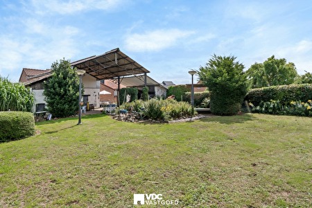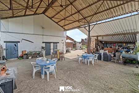 Buiten vindt u een overdekt terras met uitzicht op de groene tuin. Dankzij de ligging naast agrarisch gebied geniet u hier van absolute rust en privacy. Ook zijn er verschillende stallen voorzien, handig voor het opbergen van tuinmaterialen of andere stockage.