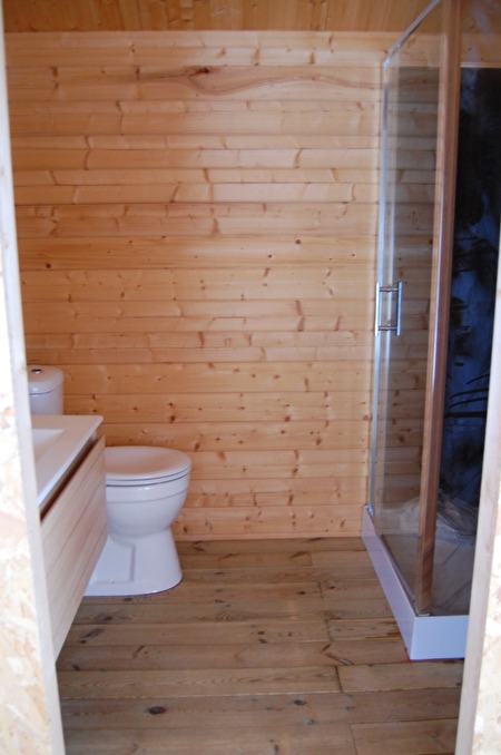 Het betreft een nieuwbouw Chalet van 70mm. dat reeds is afgewerkt met een keuken, badkamer en tuin.