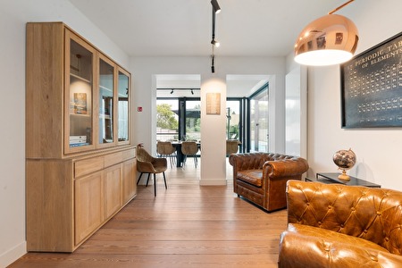 Stap binnen en geniet van een warm, uitnodigend interieur, ontworpen voor ontspanning en een ontspannen sfeer.