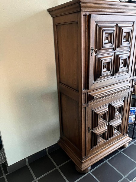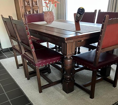 in perfecte staat ,klassen stoelen 6 stuks Barkast , dressoir 220cm vol binnenlandse eik midden eik kleur