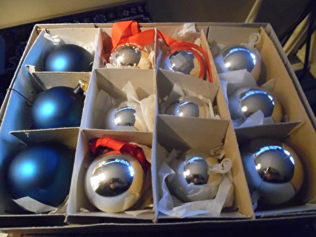 enkele dozen met kerstballen en decoratie voor de kerstboom