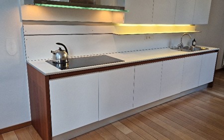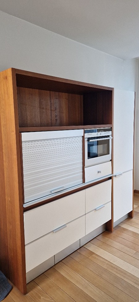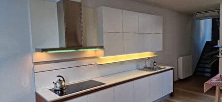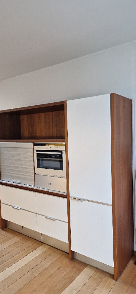Wegens verbouwing ter beschikking, keuken bestaande uit 2 wanddelen (l x h): 3.69 x 2.47 en 2.21 x 2.13Ene deel bestaande uit inductiekookplaat, dampkap, afwasmachine en spoelbak en andere deel uit inbouwkoelkast en -diepvries en oven.