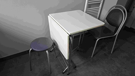 KEUKEN PLOOITAFEL, STOEL EN KRUK