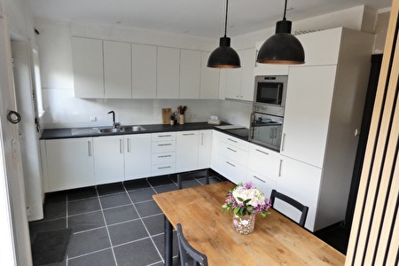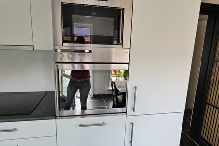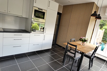 Volledige keuken van het maatwerkbedrijf Vossaert keukens met inbouwtoestellen van Atag. Microgolfoven, oven, kookplaat Siemens, koelkast Liebherr dampkap Novy, friteuse Novy. Spoelbakken Franke, boiler mag ook eventueel mee indien nodig.