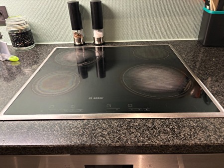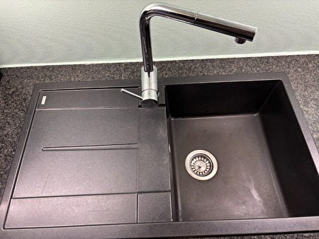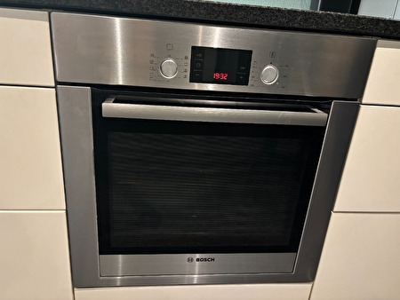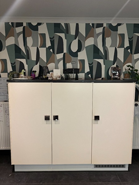 - wandmeubel (onderste helft: 392 x 89 x 66; bovenste kasten: 392 x 75 x 37), incl. granieten blad, Blanco spoelbak & Grohe kraan, Smeg dampkap, Bosch kookplaat en Bosch oven.