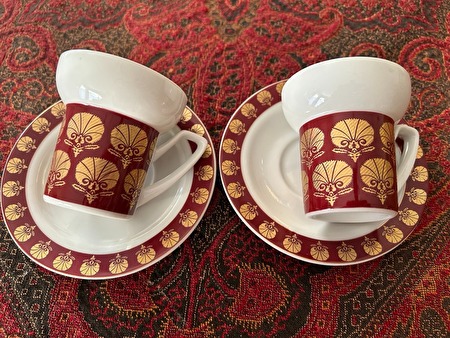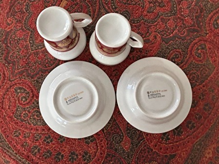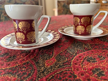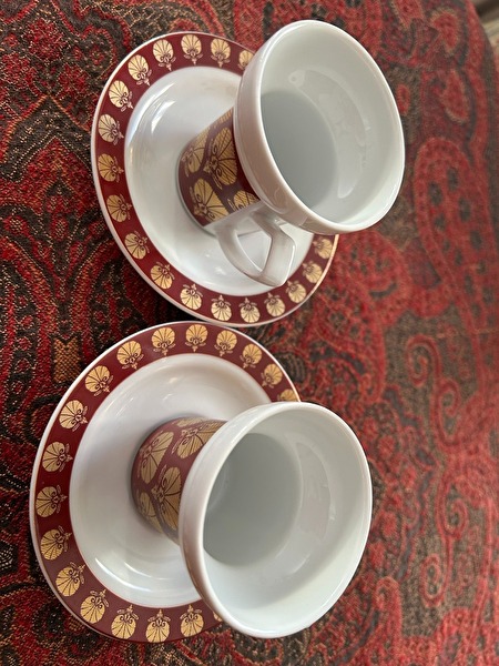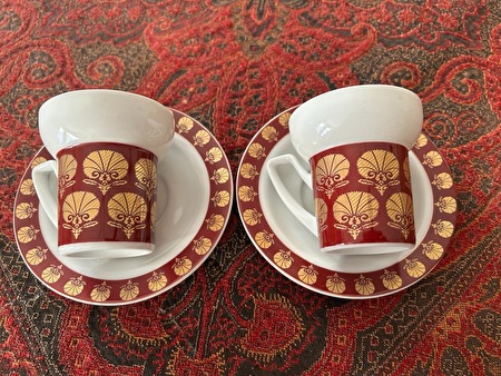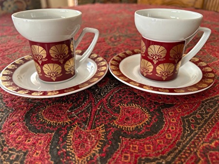 2 porceleinen Turkse koffietassen met onderbordjesDesign van Vakko