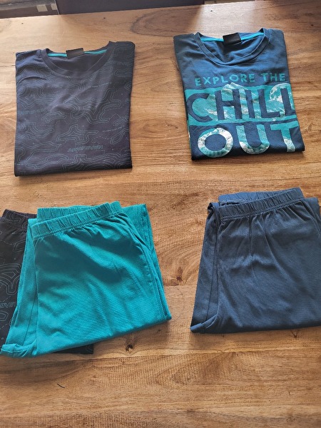 - 3 pyamabroeken en de daarbijhorende truitjes- pulletje Tom du