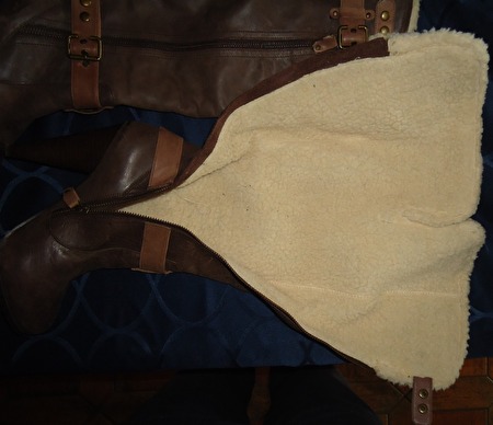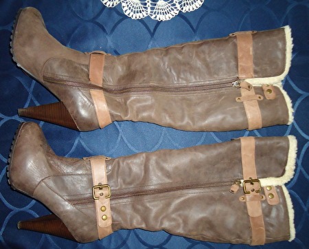Deze mooie, warme lederen malse laarzen, zijn gekocht in Canada. Bij Zalando kan men dit merk eveneens kopen.Merk is Aldo (niet Aldi). Deze zijn binnenin bekleed met warme wol. Lichtbruin van kleur en tot onder de knie. Zeer, maar dan ook in zeer goede staat!