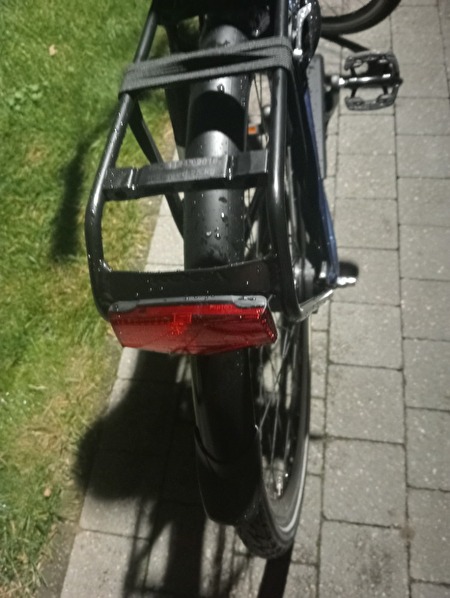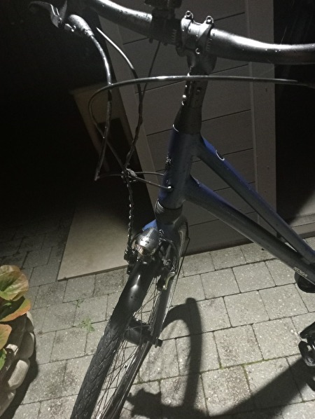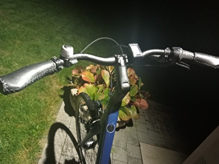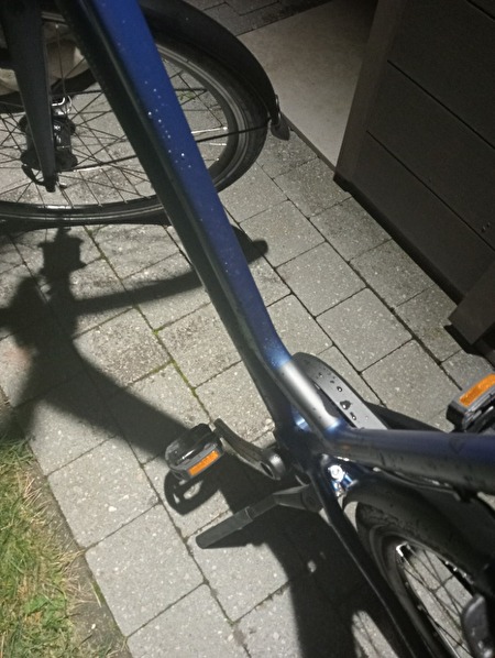 Donkerblauwe fiets met mooie bredere lederen handvaten die ondersteuning geven bij het fietsen en belangrijk die fris blijven aanvoelen als het warm tot zeer warm weer is, waardoor je geen zweethanden krijgt.