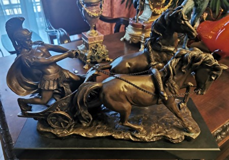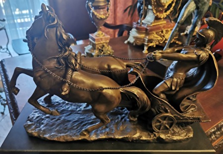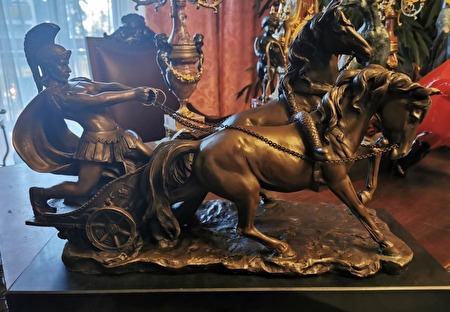 KRIJGER OP EEN STRIJDWAGEN - ENORM BRONZEN BEELD
