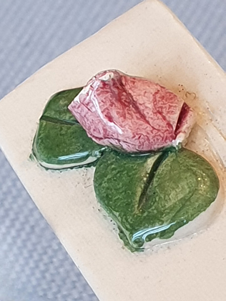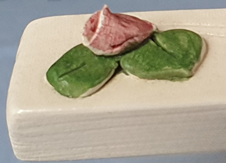 Zeldzame set van zes witte keramische messenhoudersmet rozenbloemdecoratie in reliëf
