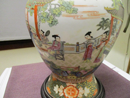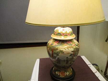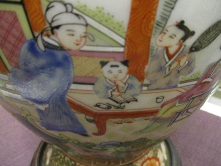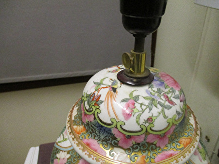 CHINESE VINTAGE TAFELLAMP IN PORSELEIN FAMILIE ROSE