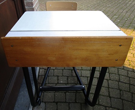 vintage kinderlessenaar in nog hele mooie staat,73 cm H / 60 cm br / 75 cm diep met stoel inbegrepen