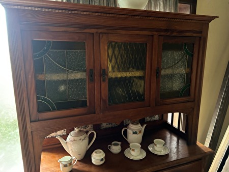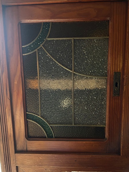 Art Deco buffet kast jaren 20/30.Bovenkast met 3 deurtjes met glas in lood.