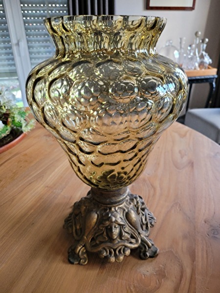 ANTIEKE VAAS - GEEL GLAS - H. 37 CM