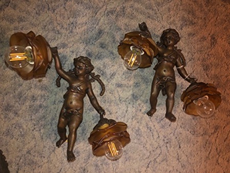2 appliques murales en Bronze; motif anges cherubins Bronzefaire offre sérieuse Ces objets sont visibles sur différents sites.