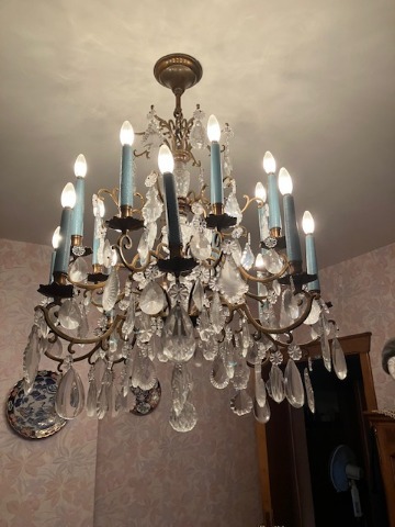 Ouder dan 100 jaar. Mag weg voor goed bod. Diameter: 86 cm; hoogte: 1m05. 15 armen.
