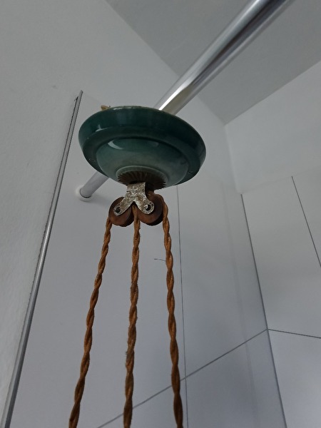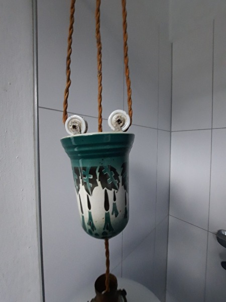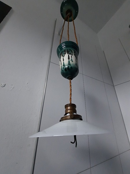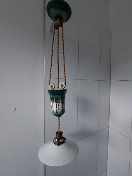 MEULEBEKE • Massieve koperen luster en reserve glas meer...