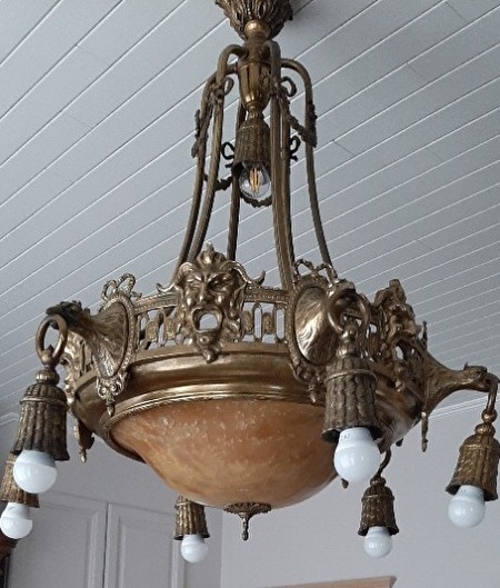 ANTIEK GEEL BRONS STRIJKIJZER VOOR HOUTSKOOL