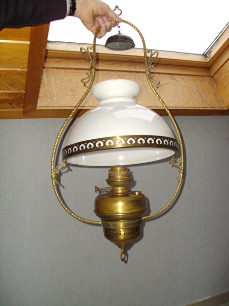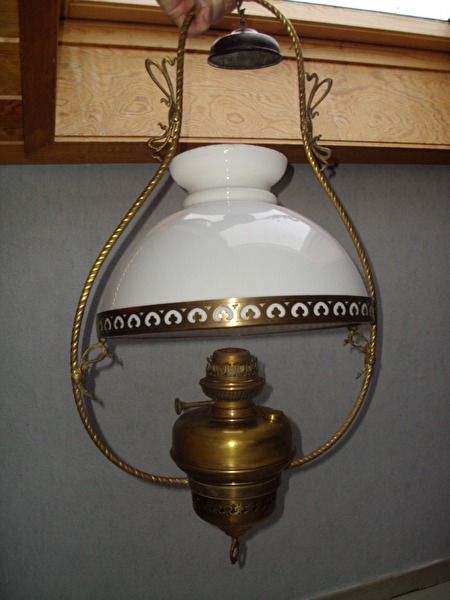 koperen olielamp met witte kap