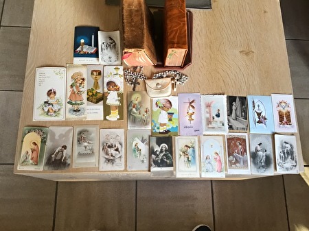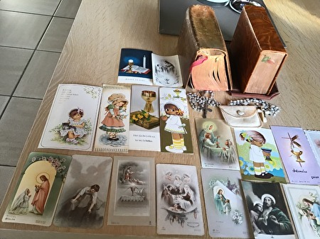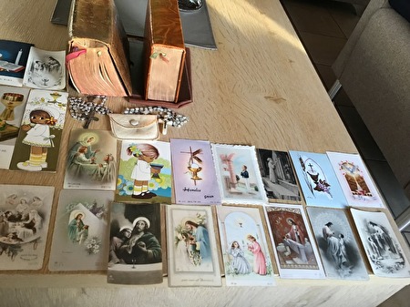 Katholiek boek voor je Plechtige kommunie ( bijbel ) , boek met hoes ;deze boek is van 1942 ( 80 jaar oud )