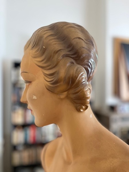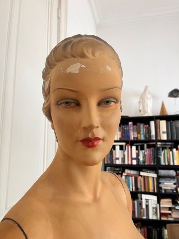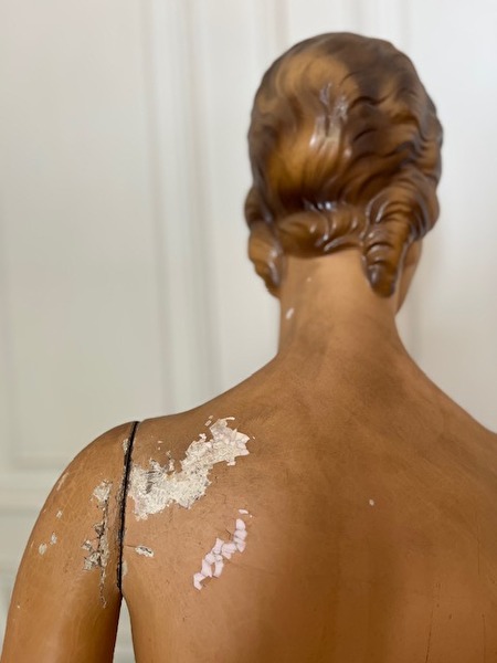 Een charmante en sfeervolle etalagepop uit de eerste helft van de 20e eeuw. Het object is een fraai voorbeeld van vroeg 20e-eeuws etalagewerk en straalt de elegantie van die periode uit. De pop heeft een natuurlijke houding en klassieke uitstraling, wat haar zowel voor verzamelaars als voor decoratieve doeleinden aantrekkelijk maakt.