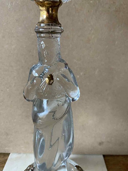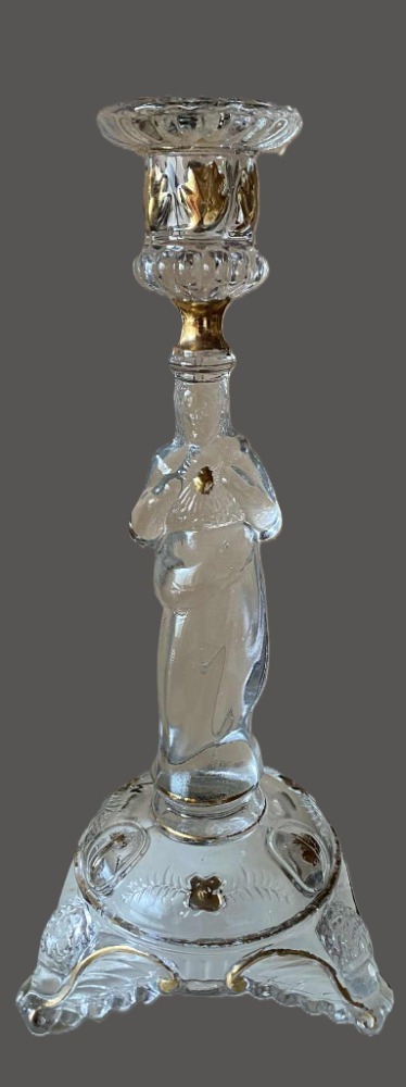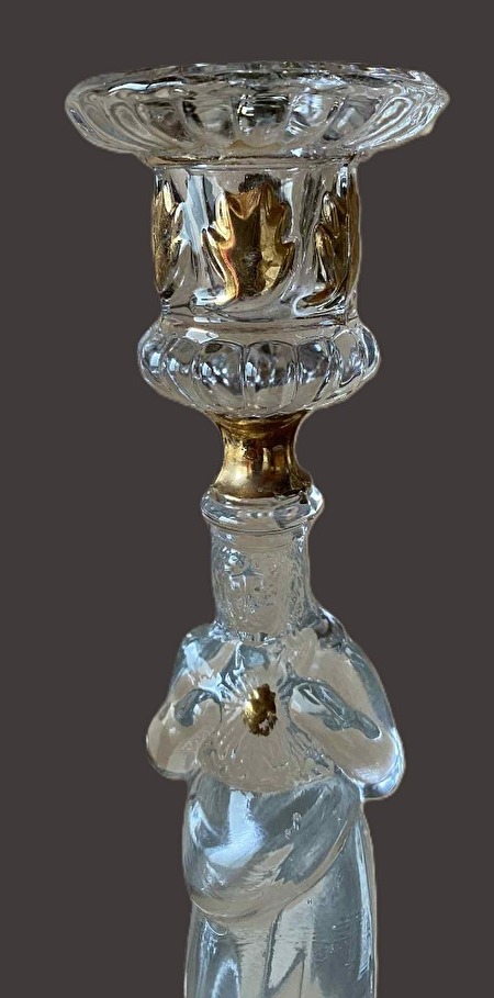Prachtige kandelaar " geloof hoop en liefde " in gegoten kristal afgewerkt met gouden accenten.