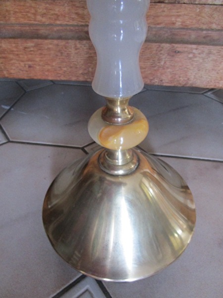 asbak op marmeren voet met koper, in goede en mooie staat, druk systeem werkt perfect, 58 cm H