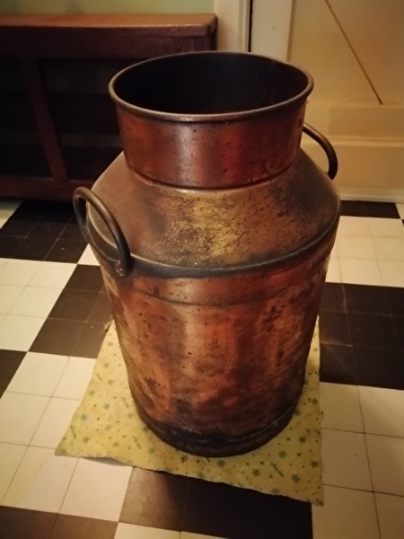 Grote verkoperde melkkan , ideaal als paraplubak in de gang of eenvoudig als decoratie in huis .