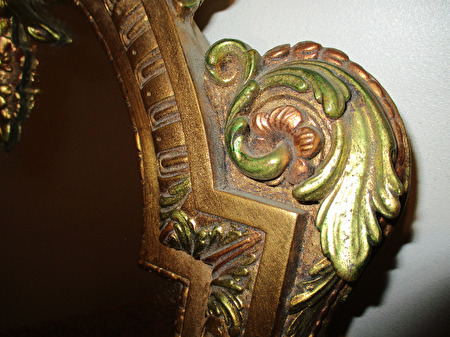 Gelimiteerde uitgave van de spiegel van Lodewijk de XIV(de Zonnekoning).Ontworpen door de bekende kunstenaar Vincenzo Francelli,de officiele restaurateur van het Paleis van Versailles.Het origineel van deze spiegel hangt in het Paleis van Versailles.Dit is werkelijk een prachtstuk en rijkelijk bewerkt in hout met 24 karaat bladgoud-Barokstijl.Gestoken en verguld hout met veel oog voor details.Afmetingen:Hoogte x Breedte=+/-95 cm x 53 cm.Straalt pracht en praal uit.Een echte blikvanger in huis.In mooie staat met minimale gebruikssporen van ophanging.Echt iets voor verzamelaars.Rechts onderaan gesigneerd met initiaals van de kunstenaar.De oorspronkelijke verkoopprijs was 34.500 Bf.Omgerekend +/- 862 €.Zelf aangekocht op 16/01/1991.U mag steeds een redelijk bod doen.Afhalen is mogelijk na afspraak.Verzendingskosten ten laste van de koper,in overleg af te spreken.