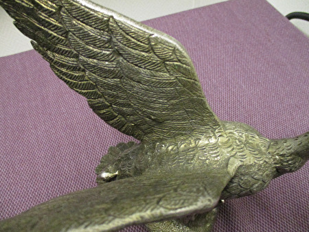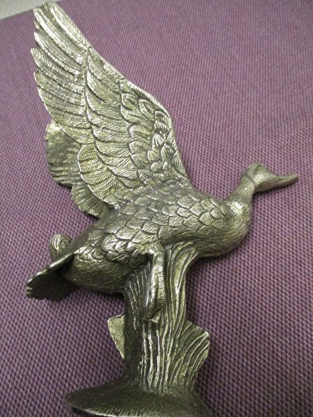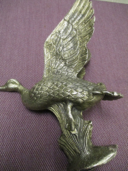 MASSIEF BEELD VAN OPVLIEGENDE EEND IN ZILVERKLEURIGE MESSING