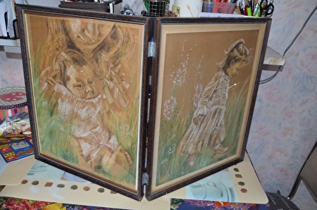 Dubbele kaders met mooie pastel - 2x 46x38 cm - kan hangen of staan - in goede staat - Wegens verhuis kleinere woning en plaatsgebrek - Prijs: 15 euro - GEEN TUSSENKOMST VAN DERDEN OF KOERIERS - omgeving Gent - tel. 0476/555.395 of 09/232.21.65prijs : 15 €