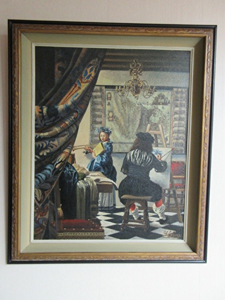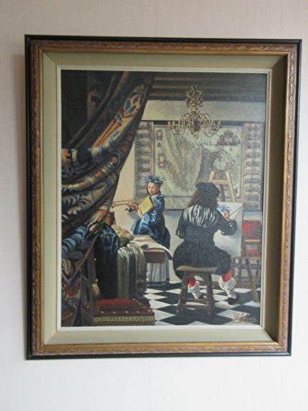 Replica schilderij op unalit plaat naar het werk “Schilderij” van Johannes Vermeer.