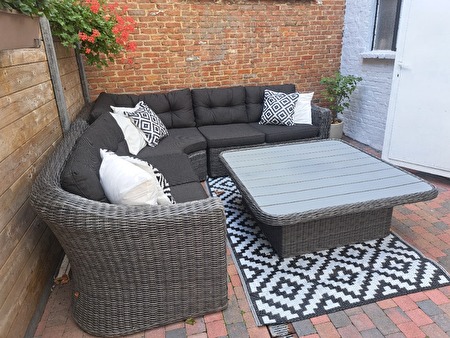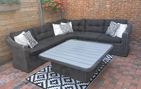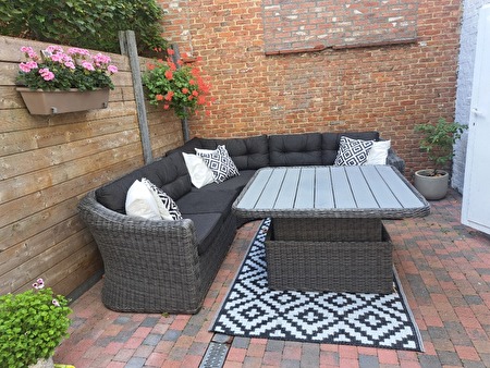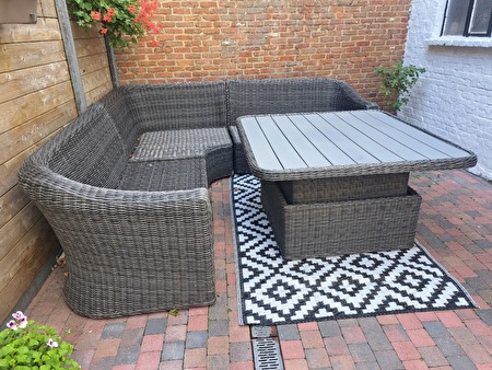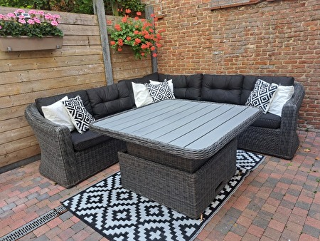 LOUNGE SET MET ALLE KUSSENS VERSTELBARE TAFEL IN HOOGTE EN TAPIJT INBEGREPEN