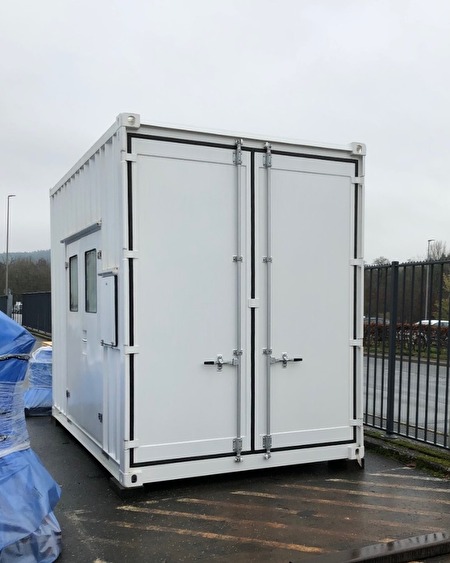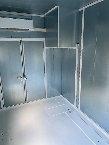 Volledig geïsoleerd Ingebouwde airconditioning Deuren met handgrepen aan één zijkant en aan de voorzijde Containerdeuren aan de andere zijkant Extra klein luikje aan de voorzijde.