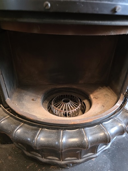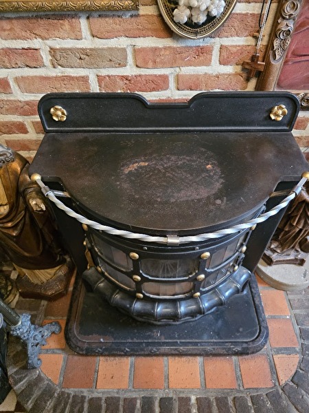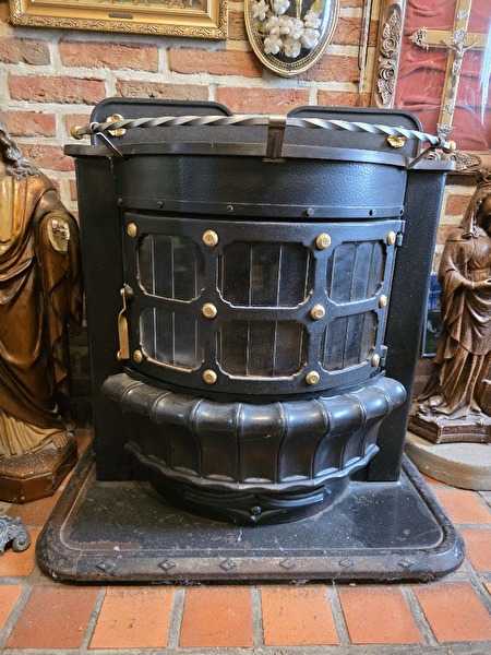 Mazoutvuur, werkt nog heel goed.Afmetingen: Voet onderaan 40 cm x 70 cm.