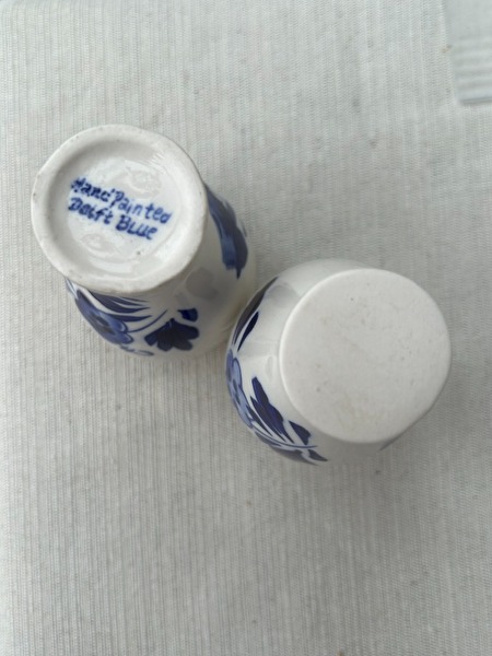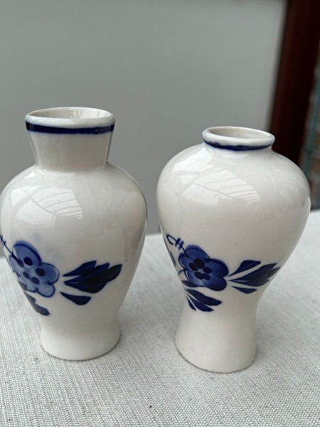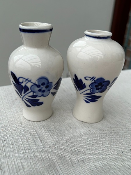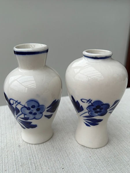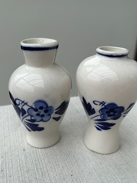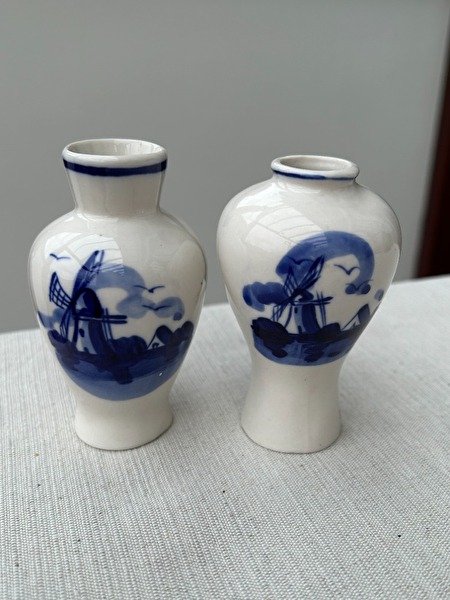 Set van 2 Vintage Delfts Blauwe vaasjes met traditioneel windmolen motief* vaasjes zijn met de hand geschilderd en zonder enige beschadiging
