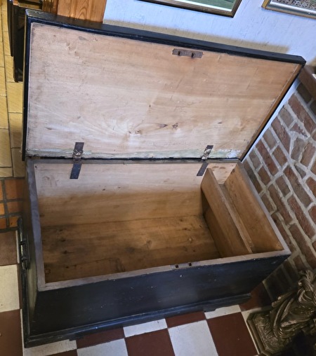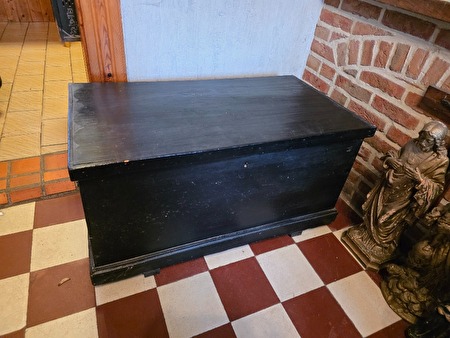 Oude zwarte houten rustieke kistMooi als decoratiestuk en praktische bergruimte in één.