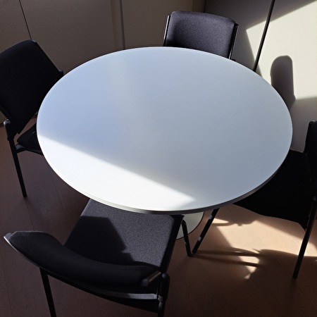 4 BUREAUSTOELEN MET WITTE TAFEL - NIEUWSTAAT