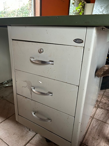 Vintage metalen bureau uit de jaren 50/60, met 6 schuiven, industrieel look