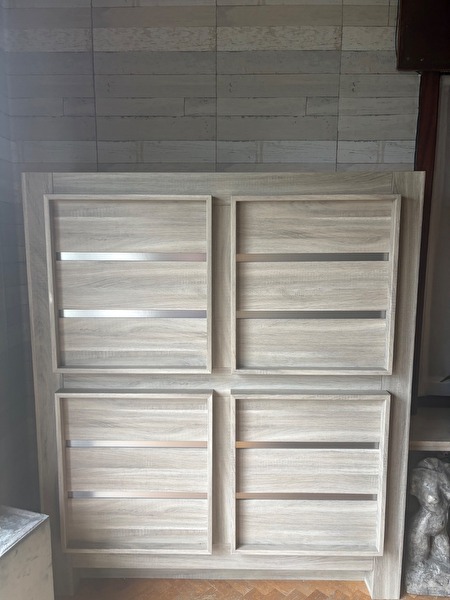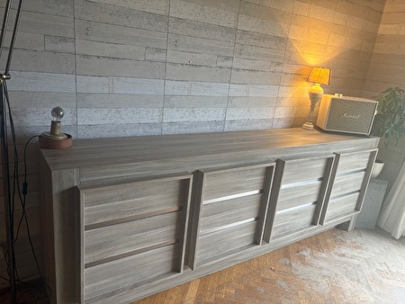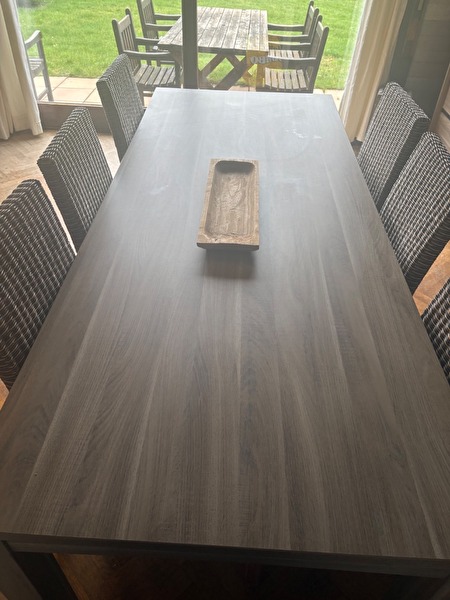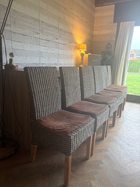 Volledige eetplaats. Weg wegens verhuis. Dressoir 2.4 lengte 92 hoog 45 diep. Barkast: 1.60 hoog 1.38 breed 46 diep. Tafel:2.2 lente 90 breed 77 hoog. 6 stoelen