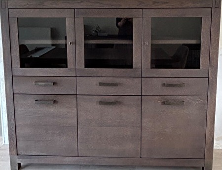 - highboard: 3 laden, 3 glazen deuren, 3 gesloten deuren