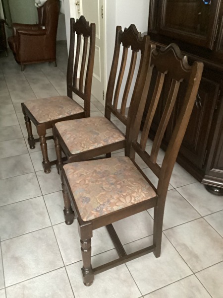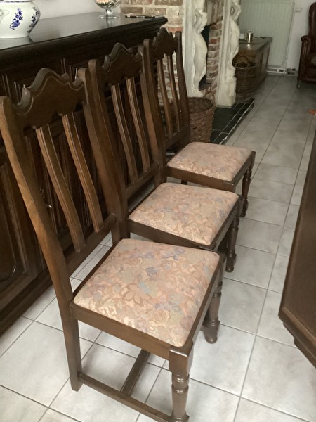 6 stoelen met stoffen zitkussen : 50 euro