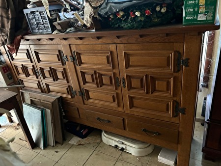 Afmetingen : dressoir lengte 242 cm, breedte 55 cm, hoogte 120 cm