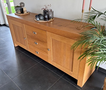 Graag verkopen we onze dressoir. Meubel is in een goede staat, maar vertoont een kleine verkleuring op het meubelblad (zie foto)