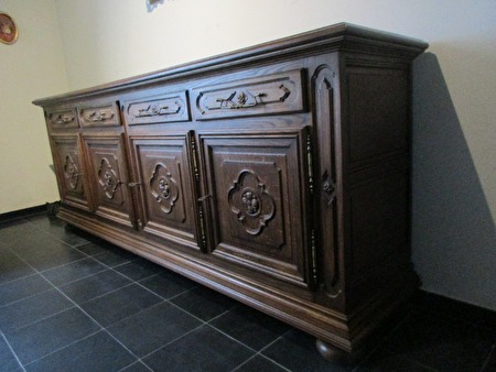 Eiken dressoir met 4 laden en 4 bergruimten met tussenin een plank