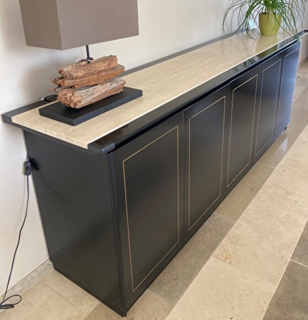 Dressoir met travertin blad - 2,5m lang - 52 cm diep - 90 cm hoog